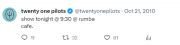 | 23:41, 25 November 2023 | Ode to Sleep live 31 Dec 2010.png (file) | 1.07 MB | Ode_to_Sleep_live_31_Dec_2010 | 1 | |