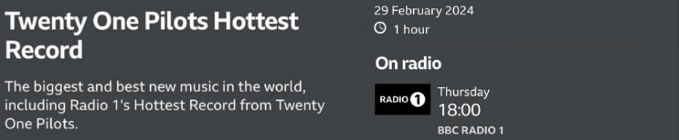 | 02:01, 28 February 2024 | New Single 29 Feb 2024 from BBC.png (file) | 145 KB | 1 | ||